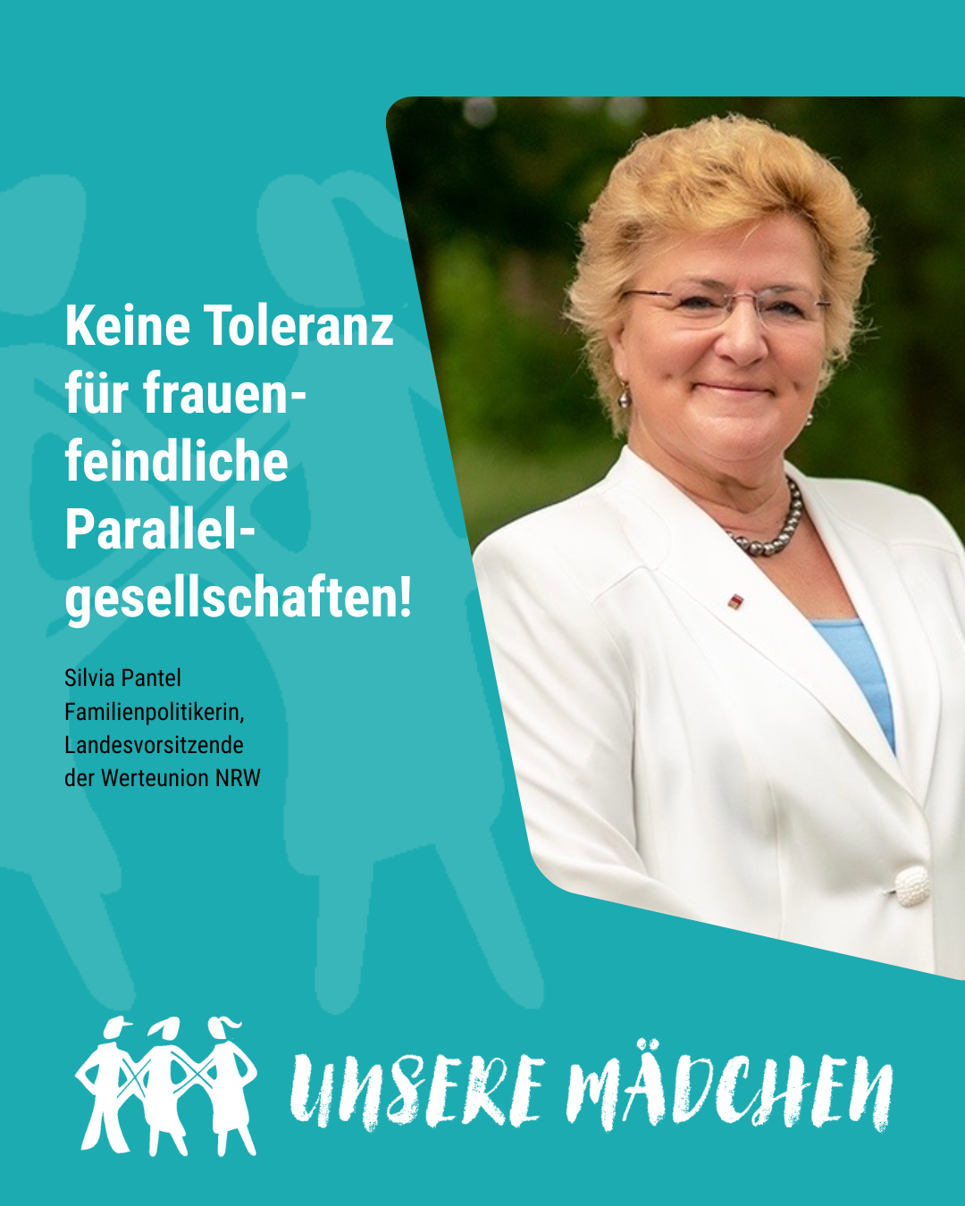 Frauen und Mädchen haben das Recht auf Freiheit, Sicherheit, Selbstbestimmung – überall und jederzeit. Doch genau diese Freiheit steht heute wieder unter Druck. SharePic einreichenJetzt spendenUnsere Kampagne #UnsereMädchen macht sichtbar, was viele spüren: archaisch-patriarchale und islamistische Vorstellungen sind keine Privatangelegenheit – sie greifen in das Stadtbild und unser aller Leben ein. Sie engen Frauen ein, verdrängen sie aus dem öffentlichen Raum und stellen Selbstverständlichkeiten in Frage, für die Generationen vor uns gekämpft haben.